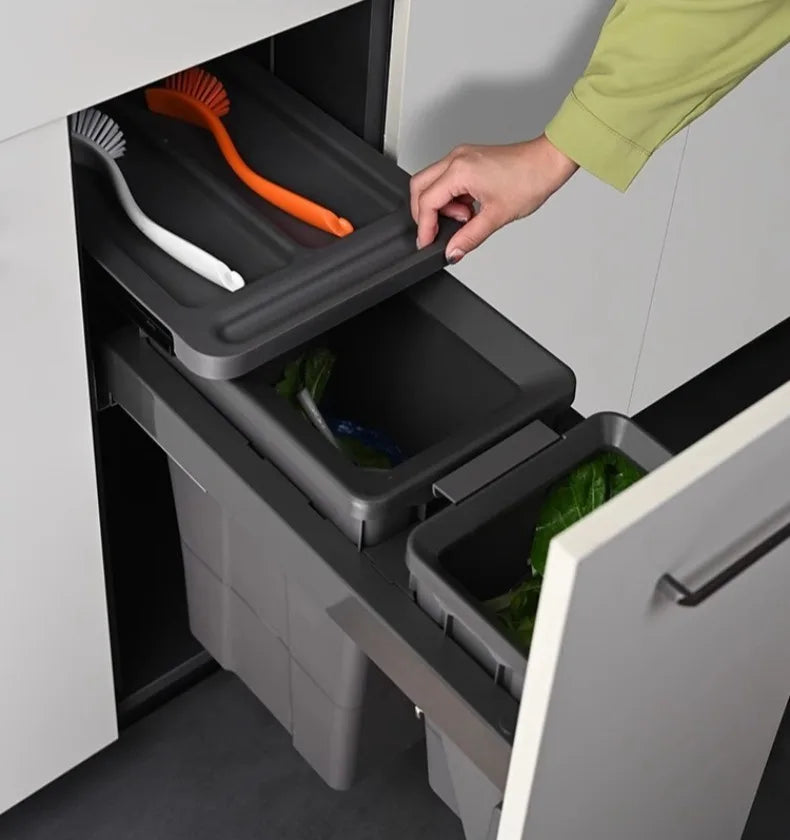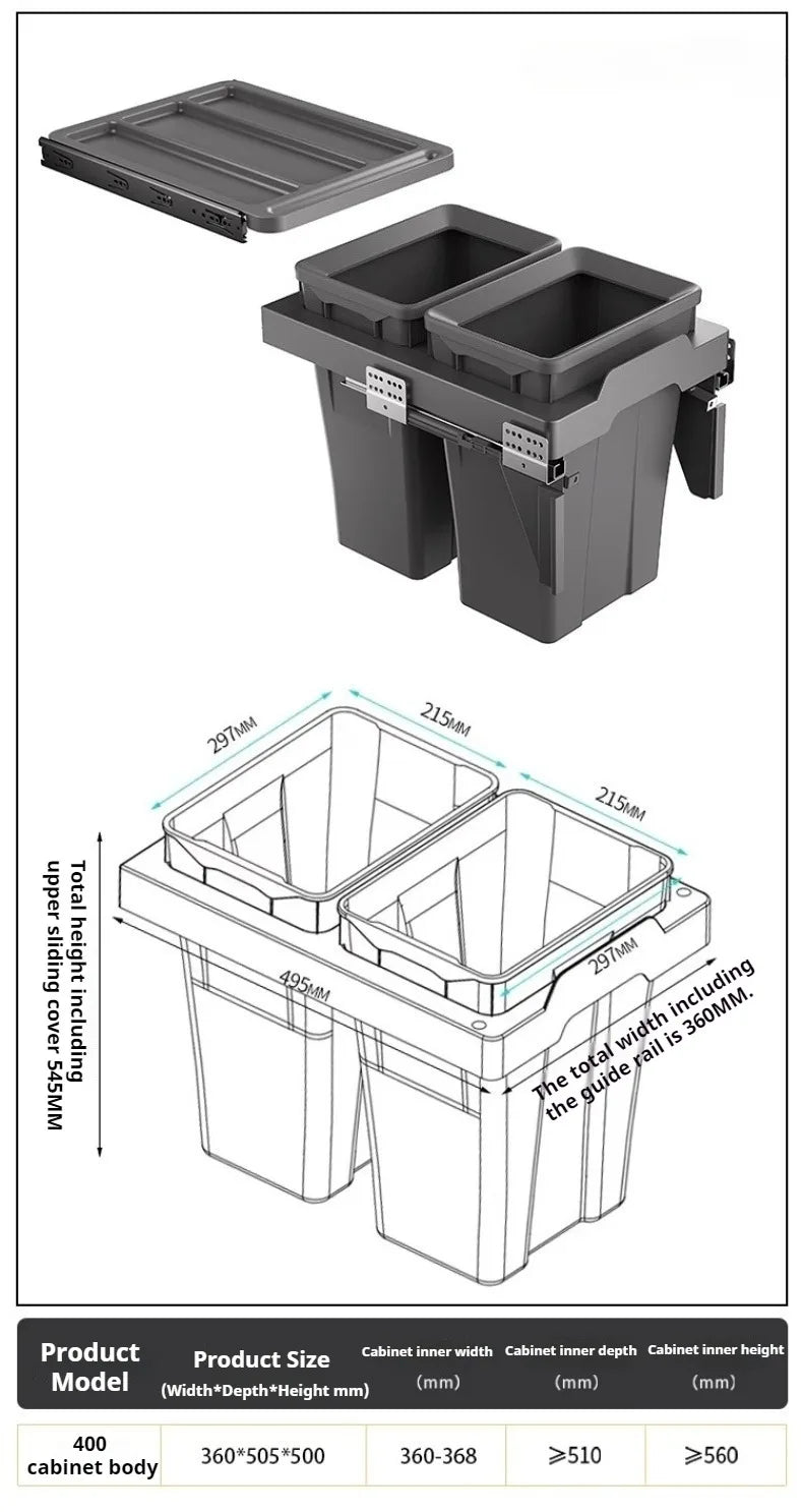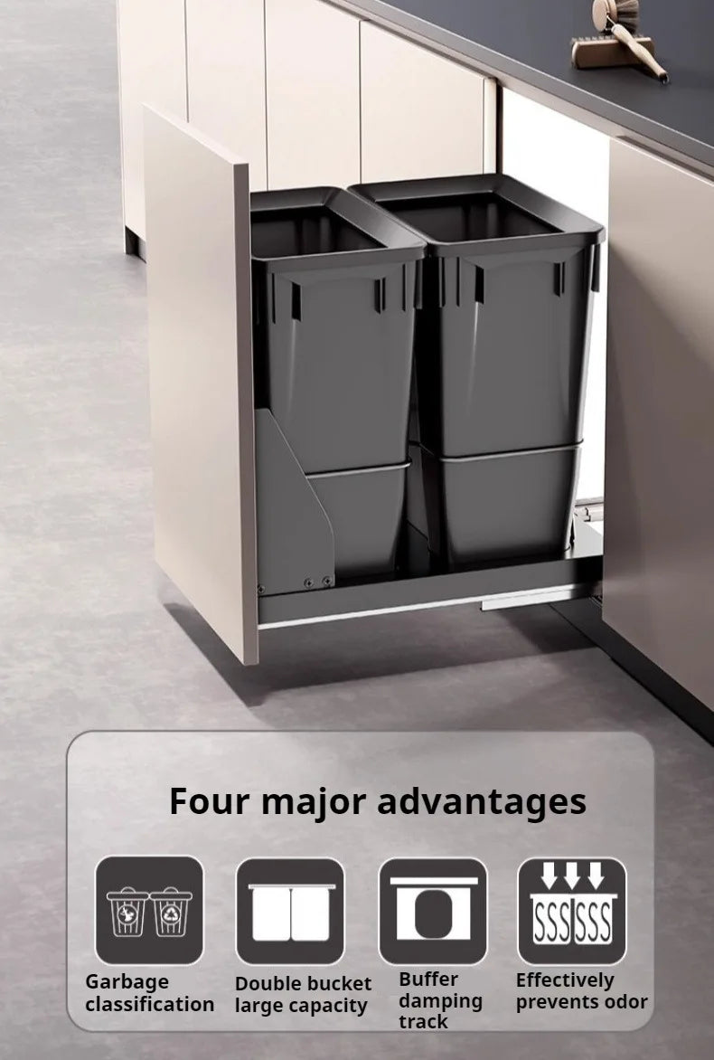 Hidden Embedded Kitchen Cabinet Trash Can – Large Capacity with Lid for Classified Food Waste Disposal